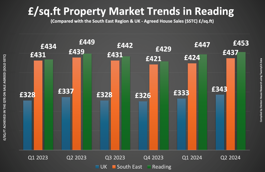 In summary, the £/sq.ft figures for the UK, the South East, and Reading illustrate the interconnected dynamics of the property market.